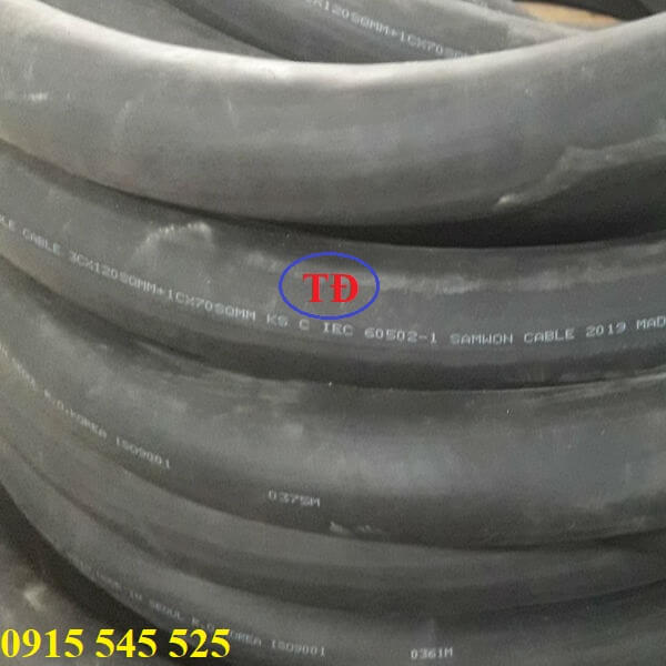 Cáp cao su 3Cx120 + 1x70 thường được quấn vào tang nên bên trong có lõi bố chịu lực và có các hạt nilon bên trong để chống co dãn.